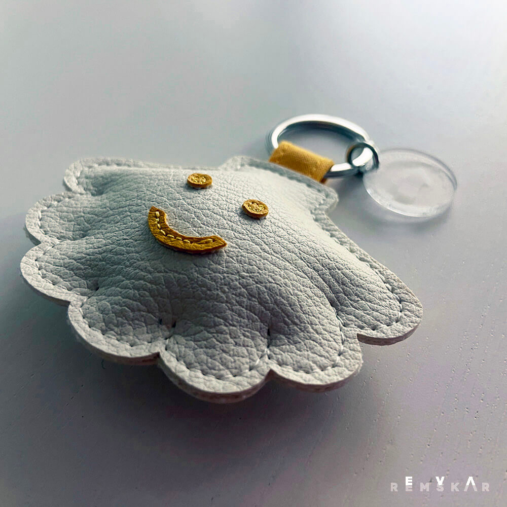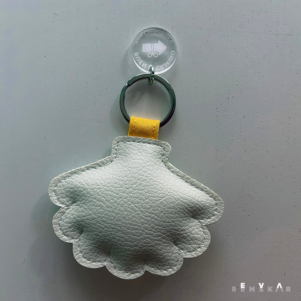 Sem usnjen obesek za ključe v obliki jakobove pokrovače, starodavnega romarskega simbola.