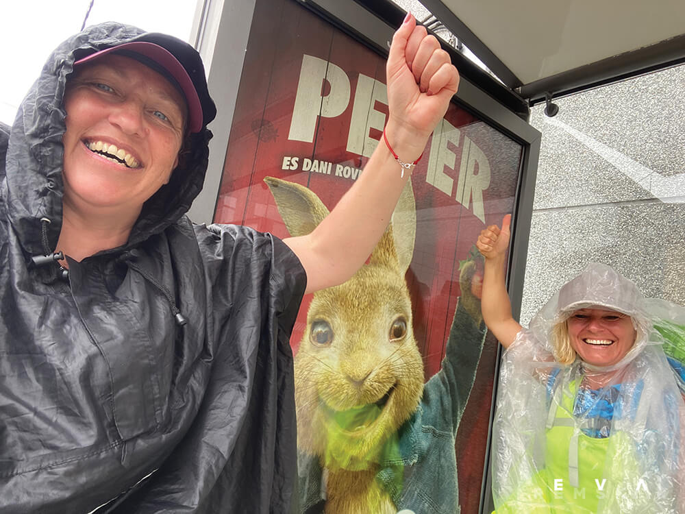 Hvaležna sem Sanji za njene dolge noge in izvrstno kondicijo. Upam, da vsaj ona ujame vozilo, potem bo počakalo tudi mene. Upehani prispeva do krožišča vrh klanca, kjer stoji zeleni Flixbus. Huh, to je šlo na tesno. Ker se potniki še vkrcavajo, prispe do avtobusa še Clara in za njo tudi Ben. “Bila si najin angel,” rečem Kanadčanki s hvaležnim pogledom. Izročiva ji rožo, tisto od sinjebradca. Zdaj je ganjena še Clara.